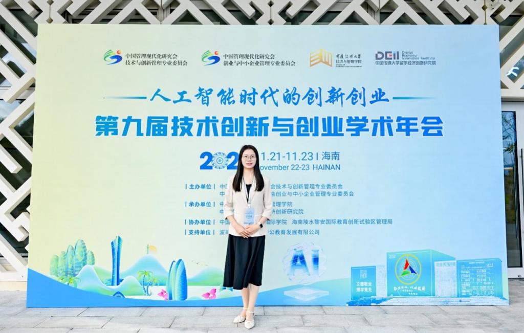 2025年11月21日至23日,bat365官网张晓丹博士应邀参加由中国管理现代化研究会技术与创新管理专业委员会、中国管理现代化研究会创业与中小企业管理专业委员会主办,中国传媒大学经济与管理学院、中国传媒大学数字经济创新研究院承办,中国传媒大学海南国际学院、海南陵水黎安国际教育创新试验区管理局协办的第九届技术创新与创业学术年会,会议吸引了来自西安交通大学、同济大学、南京大学、山东大学、大连理工大学等众多国内知名院校,涉及创业创新、工商管理、管理科学与工程、战略管理、市场营销、经济学、计算机科学等多个学科领域的200多位专家学者、业界精英及博硕士研究生共同参与探讨人工智能时代创新创业的变革和未来图景,为创新创业相关领域的学术交流与实践探索搭建了高水平平台。