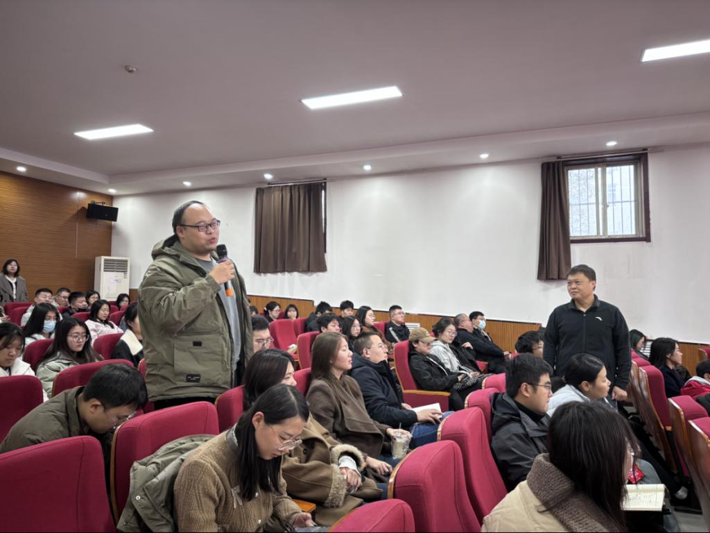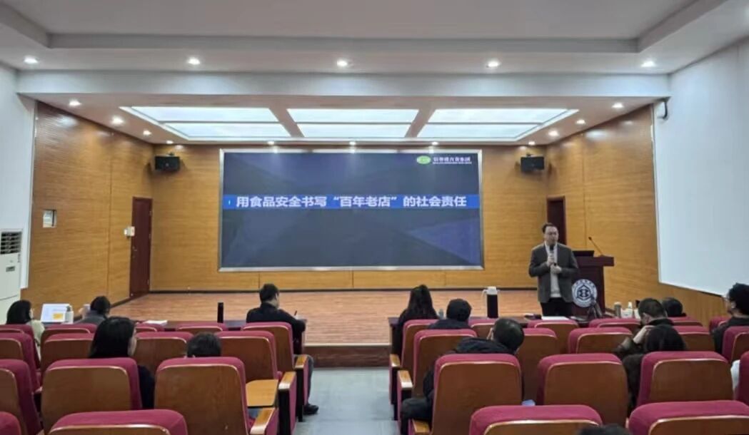 紧接着,食品安全部的纪经理围绕“用食品安全书写‘百年老店’的社会责任”进行了专题经验分享。他详细介绍了信誉楼在食品安全管控方面建立的严格体系、追溯机制以及将“诚信”核心价值观融入日常运营的具体举措,展现了企业高度的社会责任感与卓越的质量管理能力。分享会现场互动积极,师生们就关心的问题与两位经理进行了深入交流。