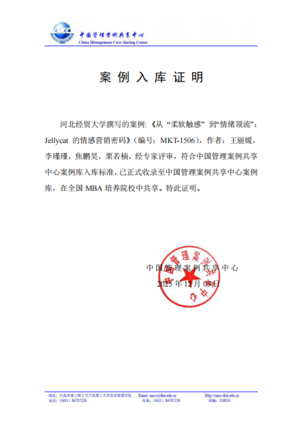 近日,bat365官方网站王丽媛副教授、2024级bat365官方网站研究生李瑾瑾、栗若楠和2024级人力资源管理2班焦鹏昊撰写的教学案例《从“柔软触感”到“情绪顶流”:Jellycat的情感营销密码》(编号:MKT-1506)入选中国管理案例共享中心案例库。