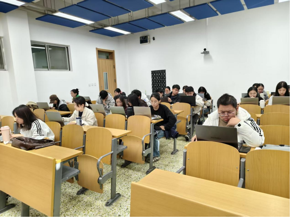 每位同学根据老师指导学习制作新媒体营销海报、运用剪映学习抖音或视频号优质视频制作、H5(第五代网页)制作、表单制作、微信公众号运营等。课堂集体拆解新媒体文案——不是纸上谈兵,是真正上场练。下图为学生学习新媒体制作。
