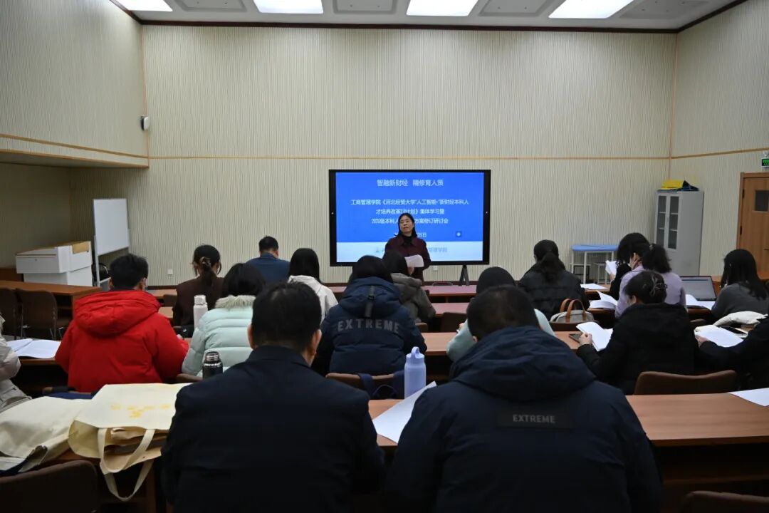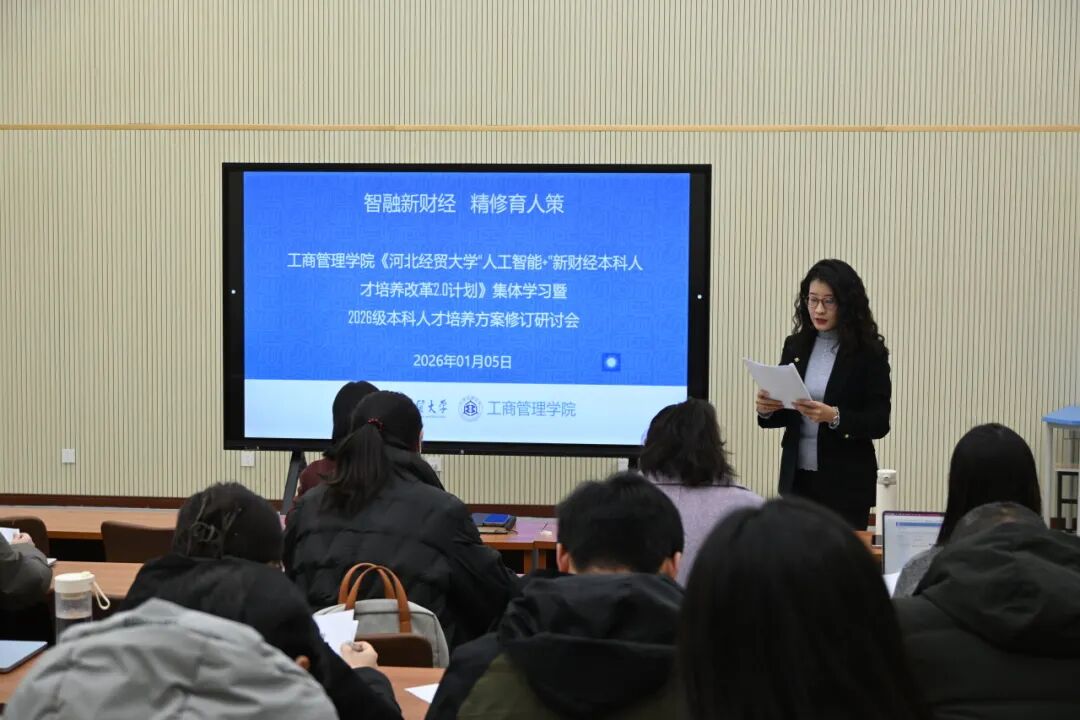 1月5日,bat365官方网站在MBA1教室召开《“人工智能+”新财经本科人才培养改革2.0计划》(以下简称《2.0计划》)集体学习暨2026级本科人才培养方案修订研讨会。会议以“智融新财经,精修育人策”为主题,聚焦人才培养方案升级、应用型专业转型、智慧课程建设、产教融合深化等核心议题,共谋新财经人才培养提质路径。院长李桂荣出席会议并讲话,副院长石晓飞、封雪韵,各系主任、副主任及骨干教师近30人参会。