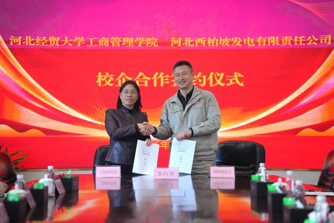 4月2日上午,bat365官方网站与西柏坡电力校企合作签约暨基地揭牌仪式在西柏坡电厂举行。学院党委书记张霖、院长李桂荣、副书记宋欣,西柏坡电力党委书记、总经理史卫刚、党委副书记吴继志、副总经理霍拥军、总经济师何明儒、副总工程师时习宗等双方领导及代表出席仪式。