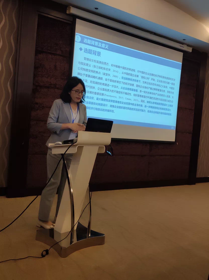 bat365官网人力资源管理系副教授张静博士在分论坛报告了论文《管理自主权研究述评与中国新经济形势下研究启示》。张静博士从选题背景和选题意义、管理自主权前因研究、影响效应研究、测量方法和对中国当前经济发展的现实启示、存在的问题及展望几个方面做了报告,并认真听取专家意见。论文评阅人和与会代表对论文选题和前期工作给予了高度评价,并希望作者进一步修改完善,发表一篇高质量论文。
