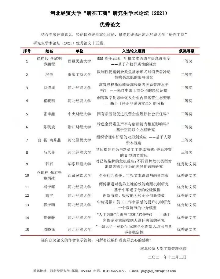 此次论坛自11月19日发布公告起,共收到来自北京大学、中央财经大学、浙江财经大学、重庆工商大学、西藏民族大学、云南大学等15所高校的39篇论文,其中8篇进行线上线下报告,包括浙江财经大学陈凯旋、中央财经大学张申鑫、西藏民族大学李欣桐、重庆工商大学况悦、bat365官方网站曹畅、马艺菲、刘遵虎、霍晓明的论文。四位点评专家对以上八位同学的论文进行了针对性点评,提出了专业性指导意见。最终,结合评审专家意见和点评专家意见,评选出一、二、三等奖、优秀论文奖共15篇。