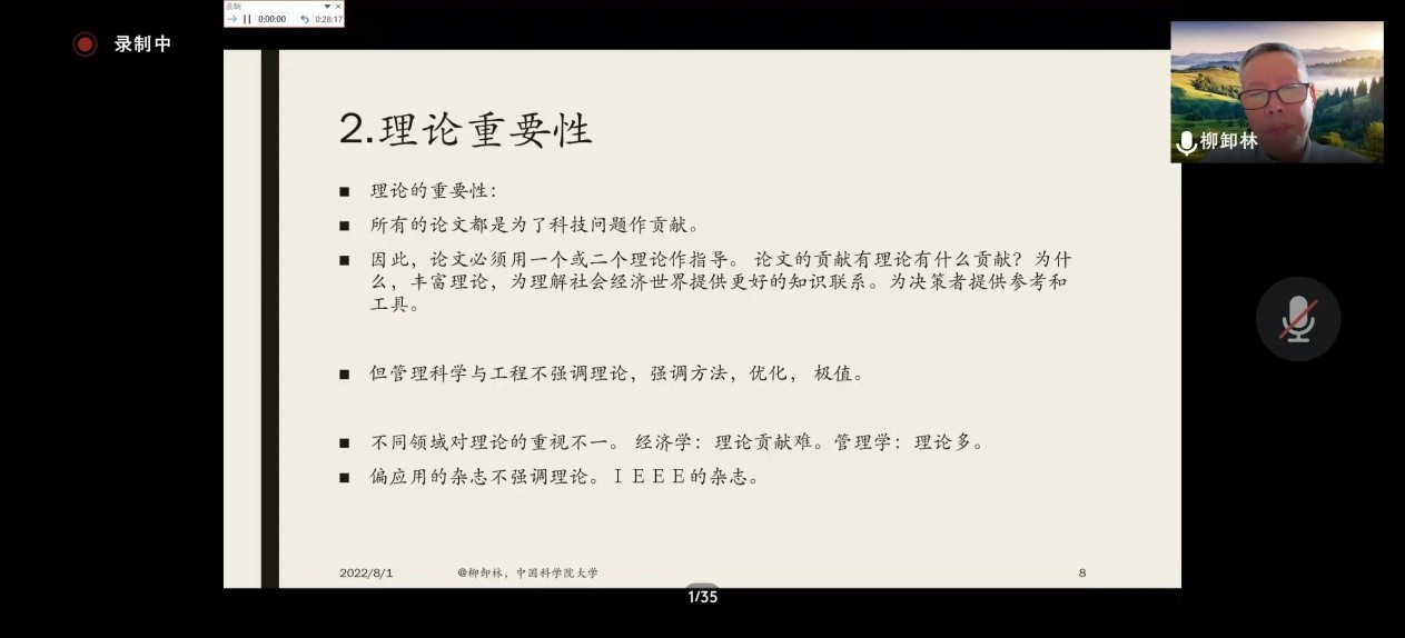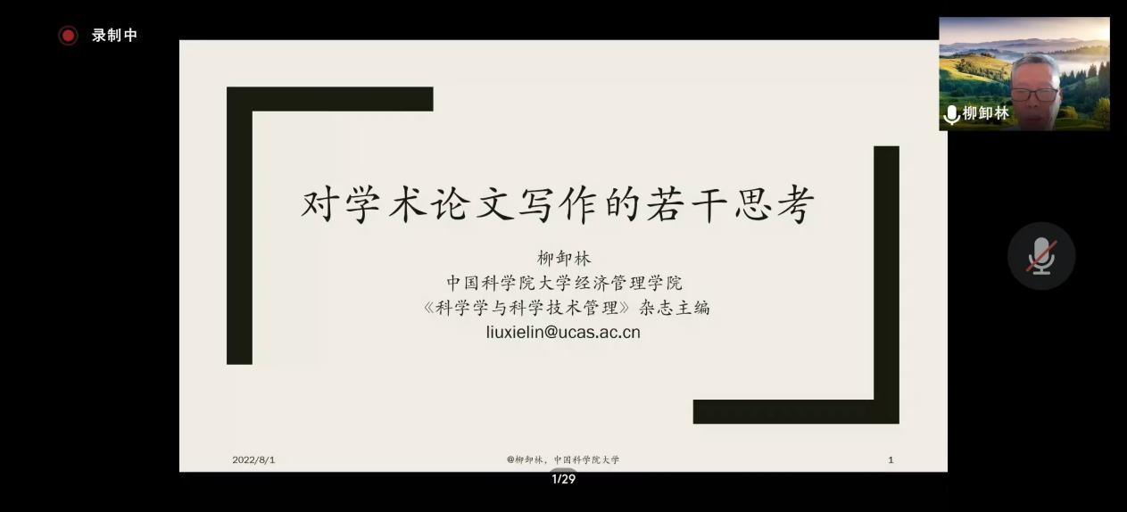 8月1日下午,bat365官方网站邀请《科学学与科学技术管理》主编、中国科学院大学经济管理学院柳卸林教授作题为“对学术论文写作的若干思考”的学术报告。本次报告以腾讯会议形式进行,来自校内外300余名师生参加,bat365官方网站院长李桂荣主持此次报告会。
