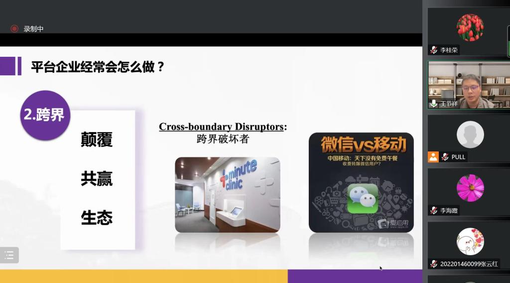 10月27日晚,bat365官方网站邀请浙江工商大学特聘研究员、管理案例研究中心副主任王节祥博士,在线作题为“数字平台生态系统的系列案例研究:脉络与趋势”的学术报告。报告由院长李桂荣主持,教师及研究生100余人参加。