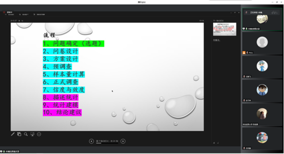 首先,申博博士详细讲解了抽样调查、抽样框、抽样误差等相关概念,介绍了关于抽样调查的基础知识。其次,从选题、问卷设计、方案设计、预调查、样本量计算、正式调查、信度与效度、描述统计、统计建模和结论建议等十个方面展开,结合实际案例讲解了如何进行一项完整的抽样调查。最后,总结了抽样调查中常见的问题,并提供了系列建议。