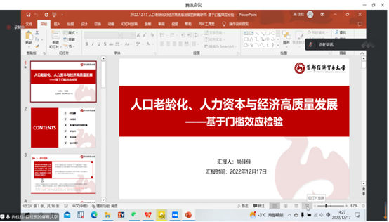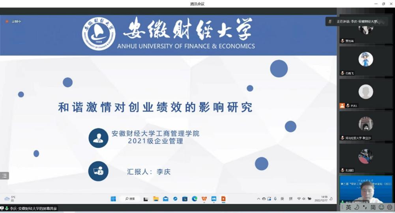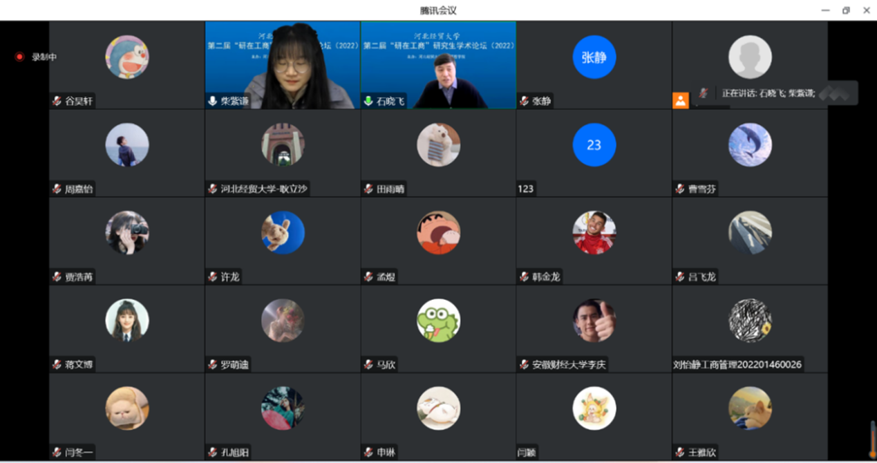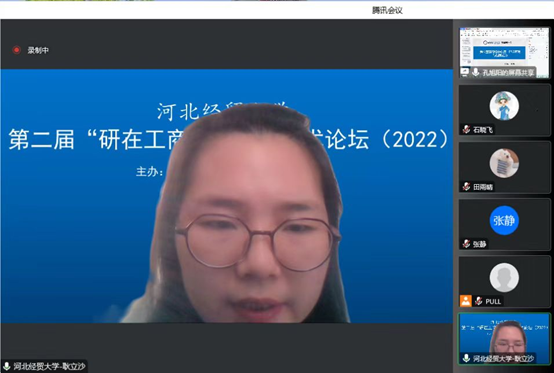 12月17日下午,由bat365官方网站主办的第二届bat365官方网站“研在工商”研究生学术论坛以腾讯会议形式成功举办,bat365官方网站院长李桂荣教授出席并致辞。论坛由bat365官方网站副院长石晓飞主持,石晓飞博士、张静博士、耿立沙博士和许龙博士出席担任评委,本次论坛包括教师及研究生共100余人参加。