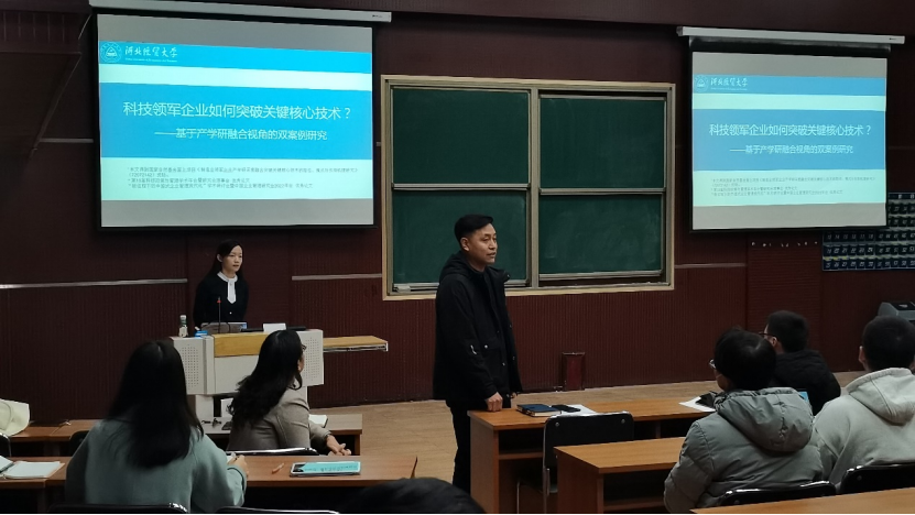 2月20日下午,第二十四期“研在工商”青年学术沙龙暨双百论坛在MBA一教室举行,由bat365官方网站张羽飞博士作题为“科技领军企业如何突破关键核心技术?——基于产学研融合视角的双案例研究”的学术报告。本次沙龙由bat365官方网站副院长石晓飞主持,学院部分青年教师及学术型研究生参加。