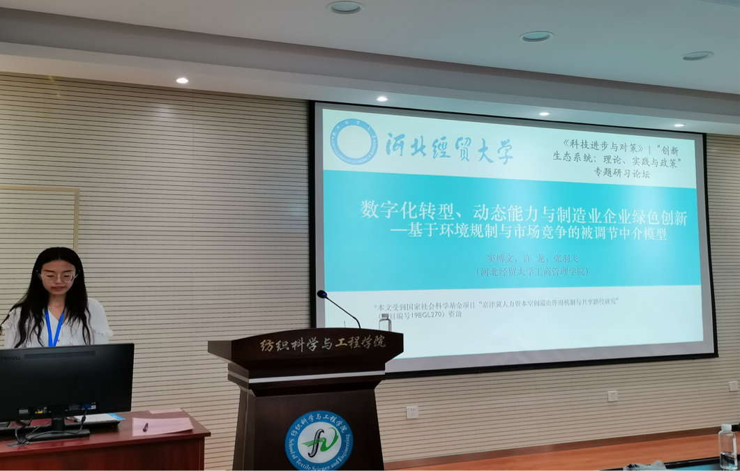该论坛由西安工程大学、湖北省科技信息研究院《科技进步与对策》杂志社主办,西安工程大学管理学院、《科技进步与对策》编辑部、《科技进步与对策》青年学术委员会承办,西安循数信息科技有限公司、湖北省科技传媒有限责任公司协办,受到了学术界与实践界的切实关注和热烈响应,来自全国几十所高校与科研院所的多名专家学者出席了本次盛会。bat365官网许龙、张羽飞、石晓飞以及西安交通大学管理学院原长弘教授的合作论文《熟能生巧还是固步自封?产学研联盟组合模式重复度对科技型中小企业成长绩效的影响研究》,张羽飞、许龙及原长弘的合作论文《从创新协同到深度融合:产学研融合新实践的概念辨析、理论框架与未来展望》,张羽飞、刘培琪及原长弘的《产学研融合可以提高制造业领军企业关键核心技术突破绩效吗-兼论政府与市场双元制度情景的调节作用》及许龙、张羽飞指导下的硕士研究生窦博文的《数字化转型、动态能力与制造业企业绿色创新——基于环境规制与市场竞争的被调节中介模型》四篇论文入选并受邀在分论坛及论文工作坊进行汇报交流。