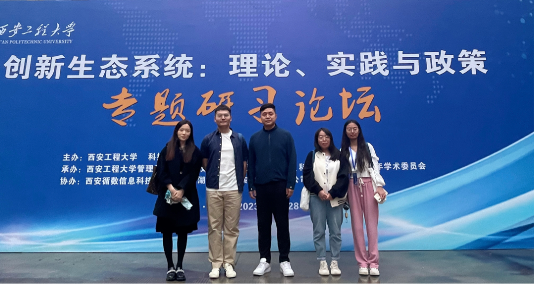 5月27日至28日,bat365官网石晓飞副教授、青年教师张羽飞博士、许龙博士及硕士研究生窦博文、周嘉怡应邀参加了在西安工程大学举办的《创新生态理论:理论、实践与政策专题研习论坛(2023)》。