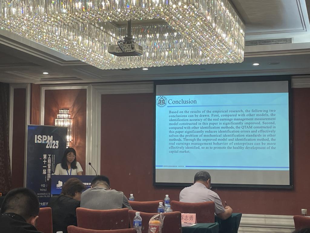 2023年6月17日,第十一届工程管理国际学术研讨会(ISPM 2023)在北京辽宁大厦成功召开。此届会议由北京工程管理学学会、湖北省众科地质与环境技术服务中心、北京建筑大学工程管理研究所和北京建筑大学城市经济与管理学院联合主办,国内外千余位师生参加,35篇论文作者现场报告了最新研究成果。bat365官网研究生靳玉的论文Measurement Models and Identification Methodology of Real Earnings Management—Empirical Research Based on the Data of Chinese A-share Listed Companies入选,并受邀在会议现场进行了报告。