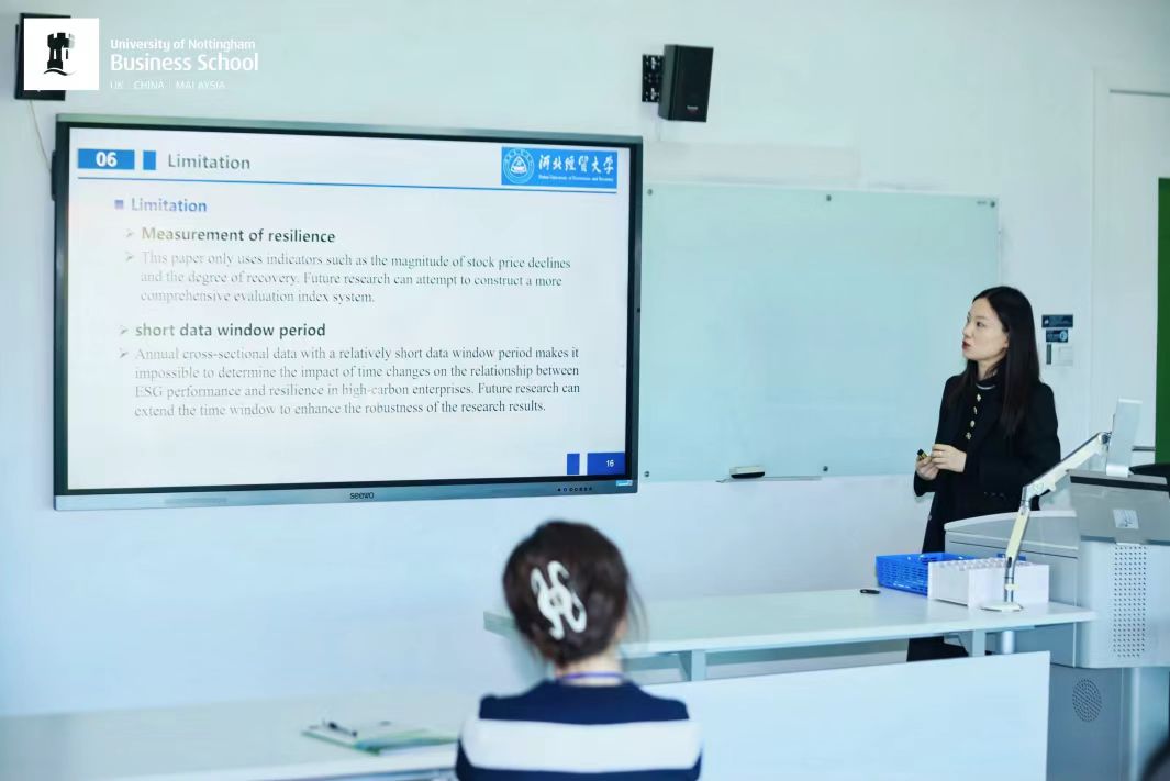 bat365官网张羽飞博士、韩晴博士、李桂荣教授的合作论文"Timely Help" or "Redundant Assistance": Research on the Impact of ESG Performance on Resilience of High-carbon Enterprises under the "Carbon Peaking and Carbon Neutrality" Goal入选。张羽飞博士代表论文作者在分论坛“公司ESG与供应链战略”用英文报告论文,引起了与会专家学者的广泛兴趣,并获得了优秀论文奖。