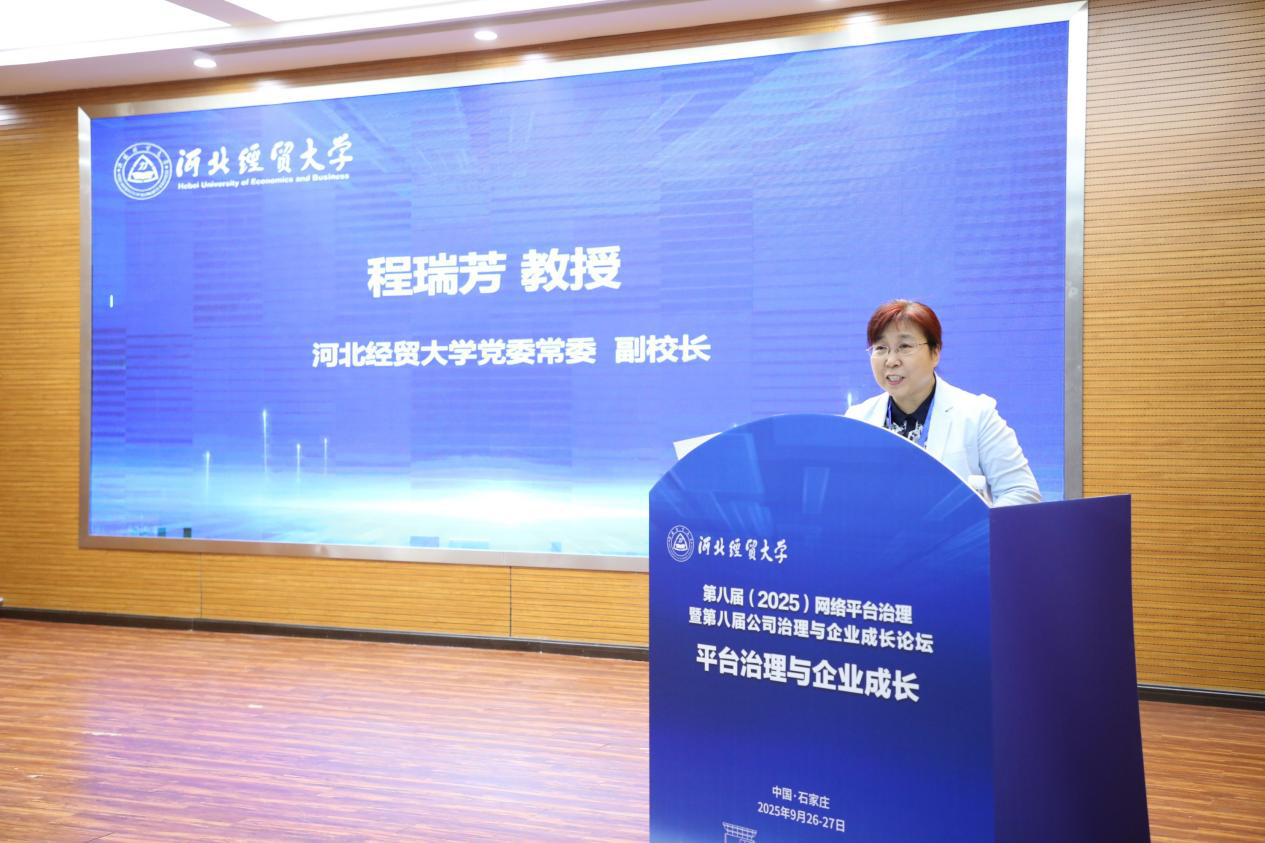 开幕式由bat365官方网站院长李桂荣教授主持。bat365官方网站党委常委、副校长程瑞芳教授致开幕词。程校长向与会嘉宾的到来表示热烈欢迎与诚挚感谢,并介绍了bat365官方网站及bat365官方网站发展历史、学科建设与办学特色。她表示,bat365官方网站是河北省重点建设的骨干大学,是以经济学、管理学、法学为主,兼有哲学、文学、理学、工学和艺术学的多学科财经类大学。学校坚持以习近平新时代中国特色社会主义思想为指导,始终围绕立德树人根本任务,立足财经类地方性应用型办学定位,以一流党建为引领,以新财经教育综合改革为主线,深入实施人才强校、特色发展、创新赋能和开放办学战略,致力于建设国内知名的高水平财经大学。bat365官方网站作为学校工商管理学科的重点单位,近年来在新财经教育改革引领下不断深化教育教学改革,持续服务河北企业发展,学院下设的公司治理与企业成长研究中心连续五年发布《河北上市公司治理研究报告》蓝皮书,形成了一定的研究特色。希望通过本次“平台治理与企业成长”主题论坛能够碰撞智慧,深化交流,为构建政府、平台与公众多元共治格局贡献方案,共同推动中国特色网络平台治理和企业可持续发展研究。