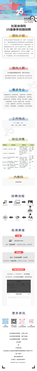 校园招聘早知道(六百七十)||比亚迪保险25届春季校园招聘